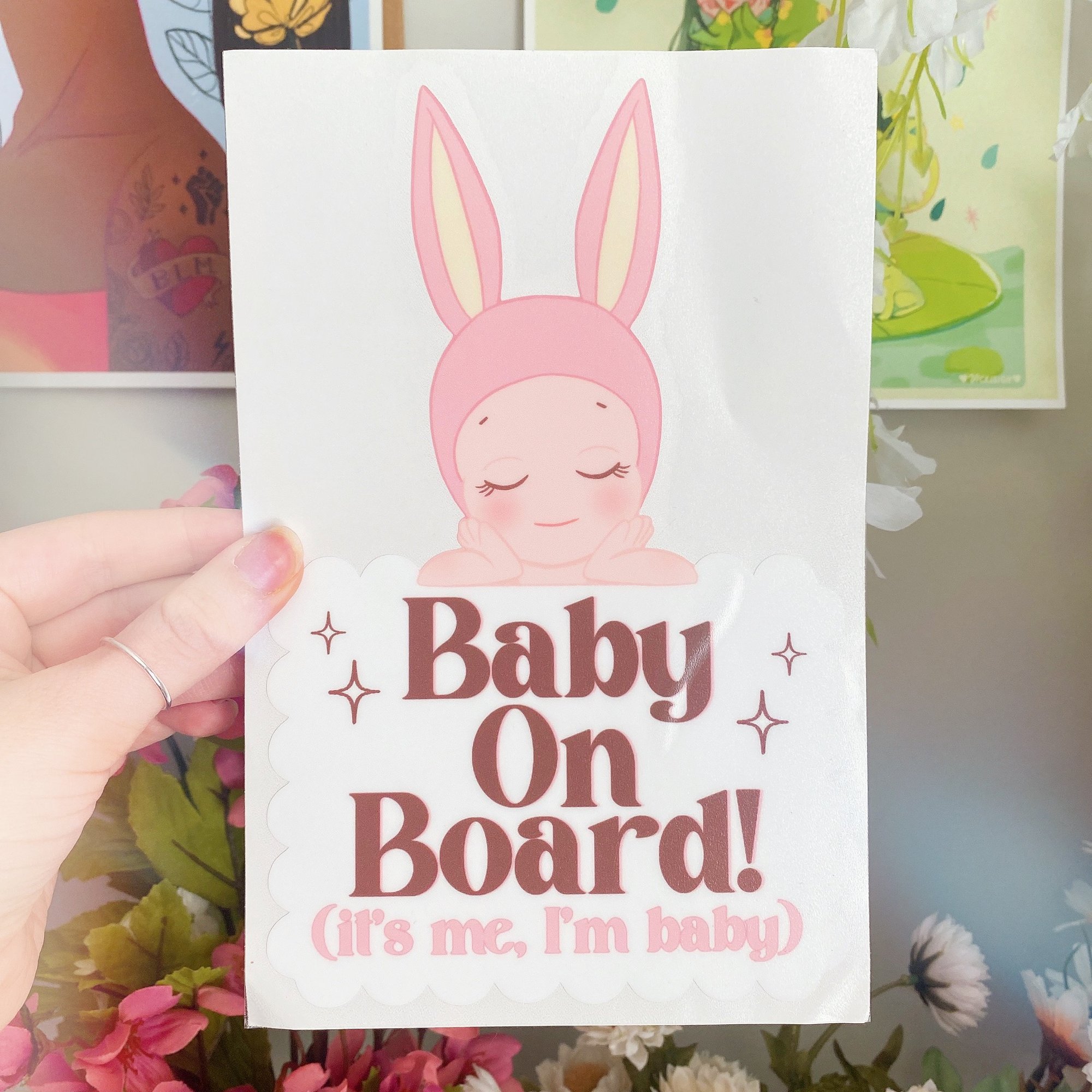 A Baby on Board Sticker ft a Pink Bunny Sonny angel!