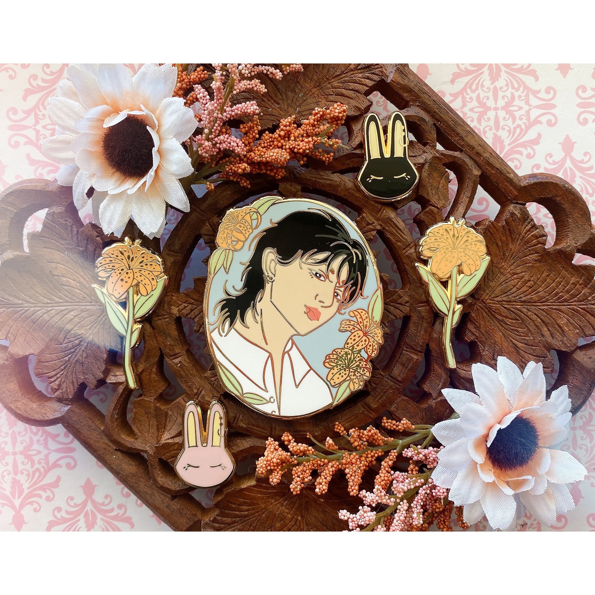 A pin collection inspired by Jungkook of BTS and his birth flower, the Tiger Lily!