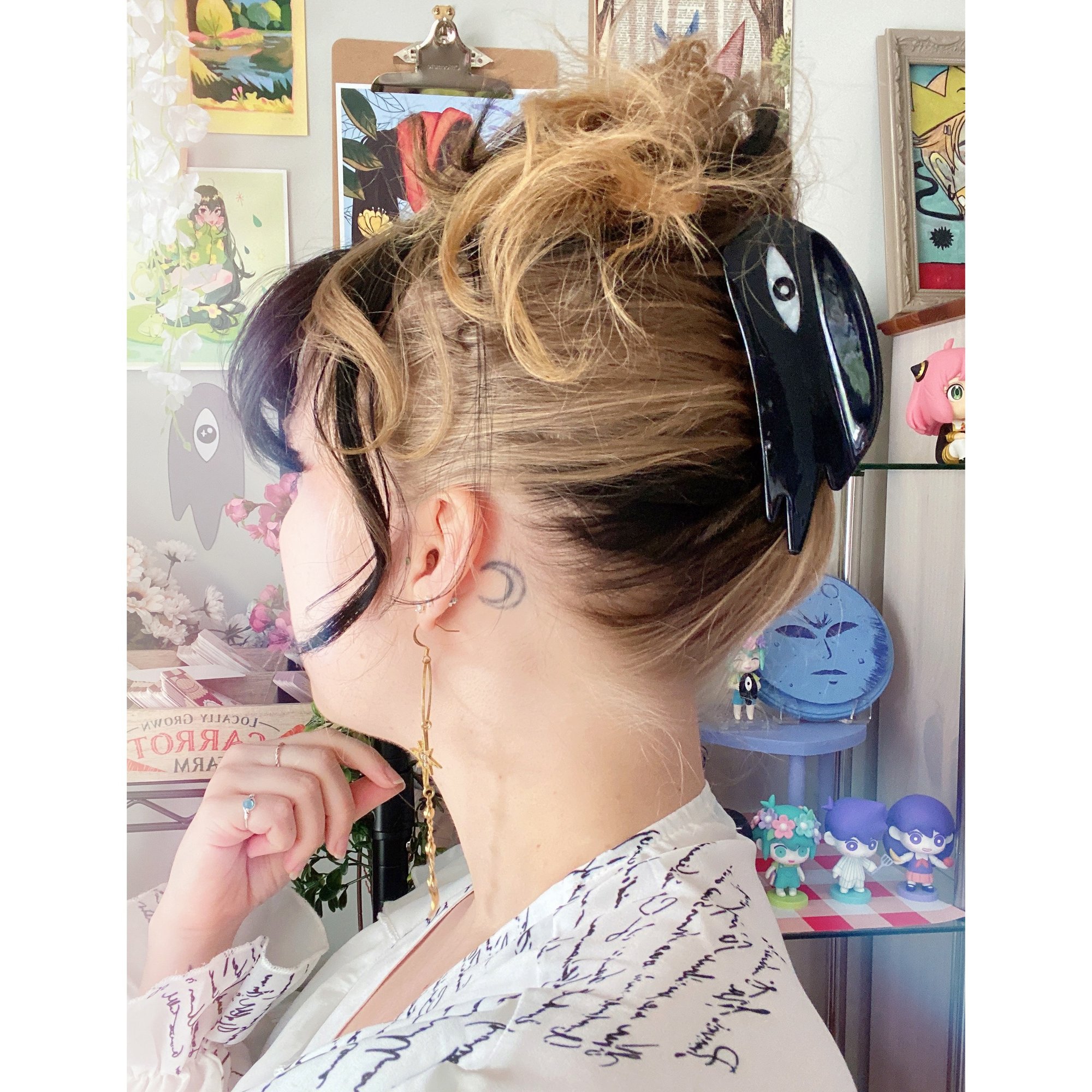 A claw-clip to put your hair up! Based on the character "Something" and inspired by the art from the pixel horror game "Omori" by Omocat.