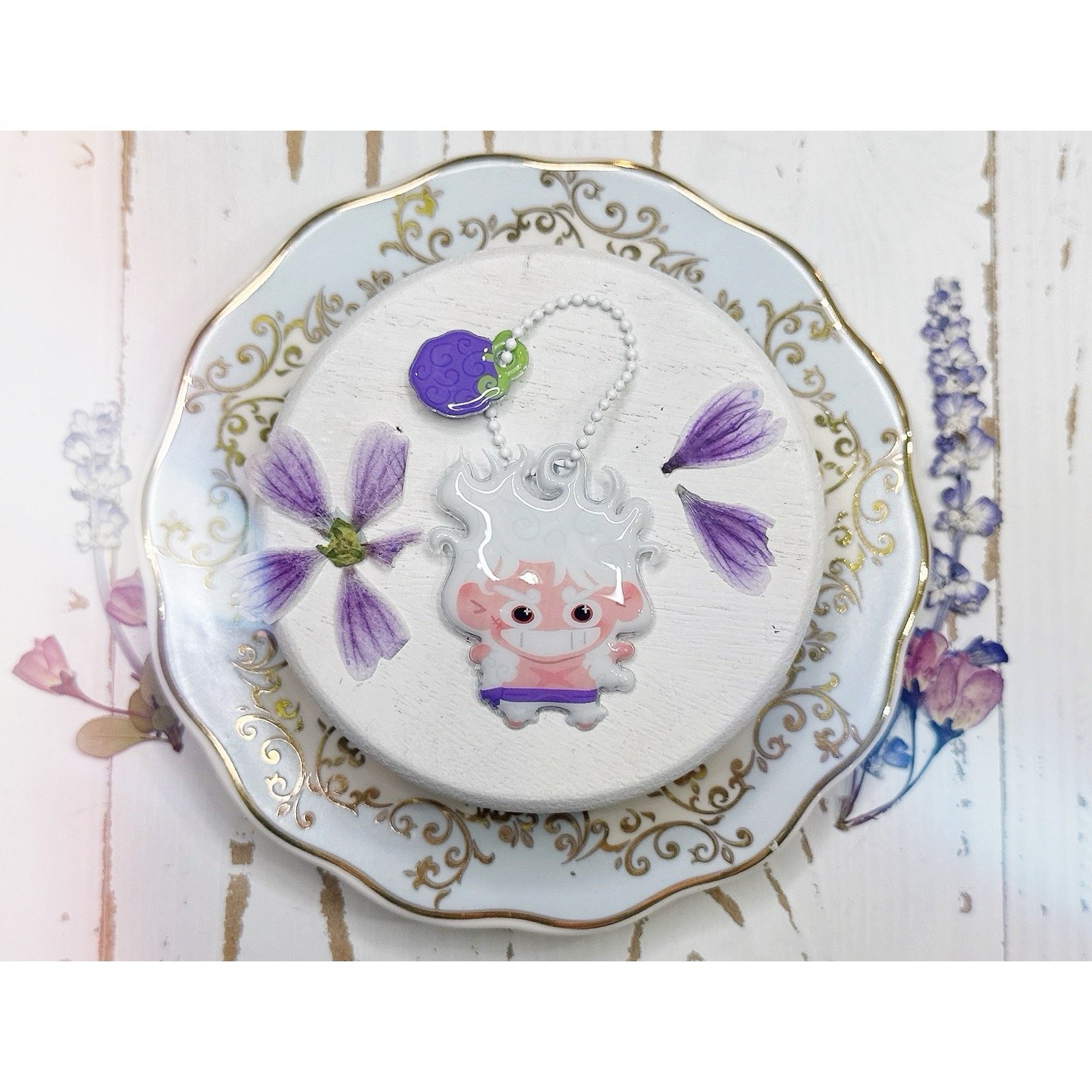 A derpy little poofy charm of the fearsome Emperor of the Sea, Monkey D Luffy in Gear 5 mode featuring his Gomu Gomu fruit!