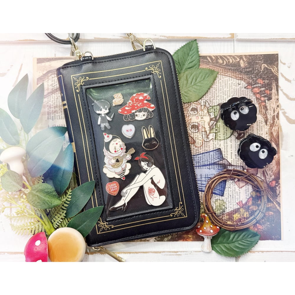 An adorable wallet designed to look like a book while displaying your favorite pins! (PINS PICTURED ARE FOR DISPLAY AND ARE NOT INCLUDED)