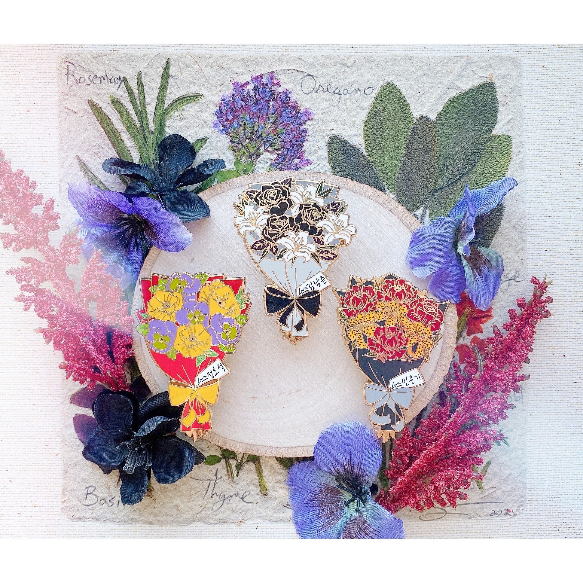 Flower Bouquets Inspired by the Mixtapes of the bts rap line. Each has different flowers with meanings I feel represent the mixtapes: