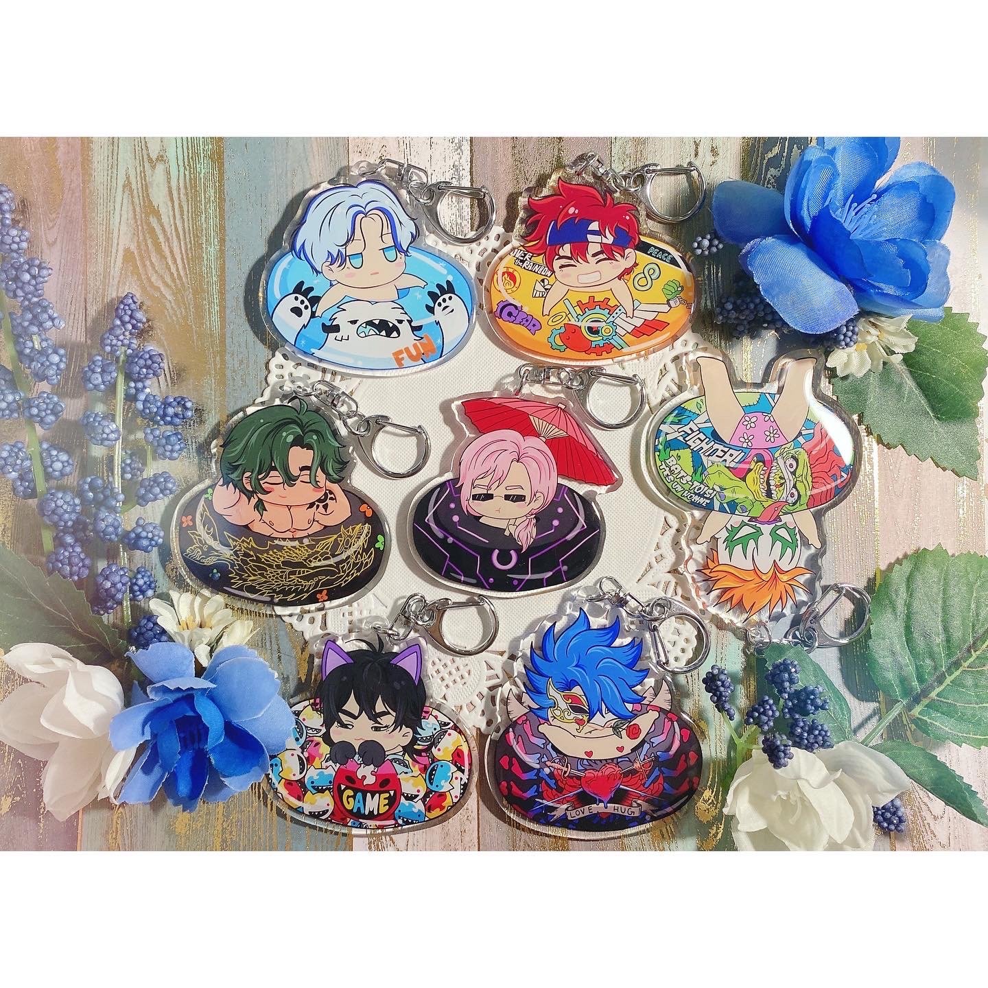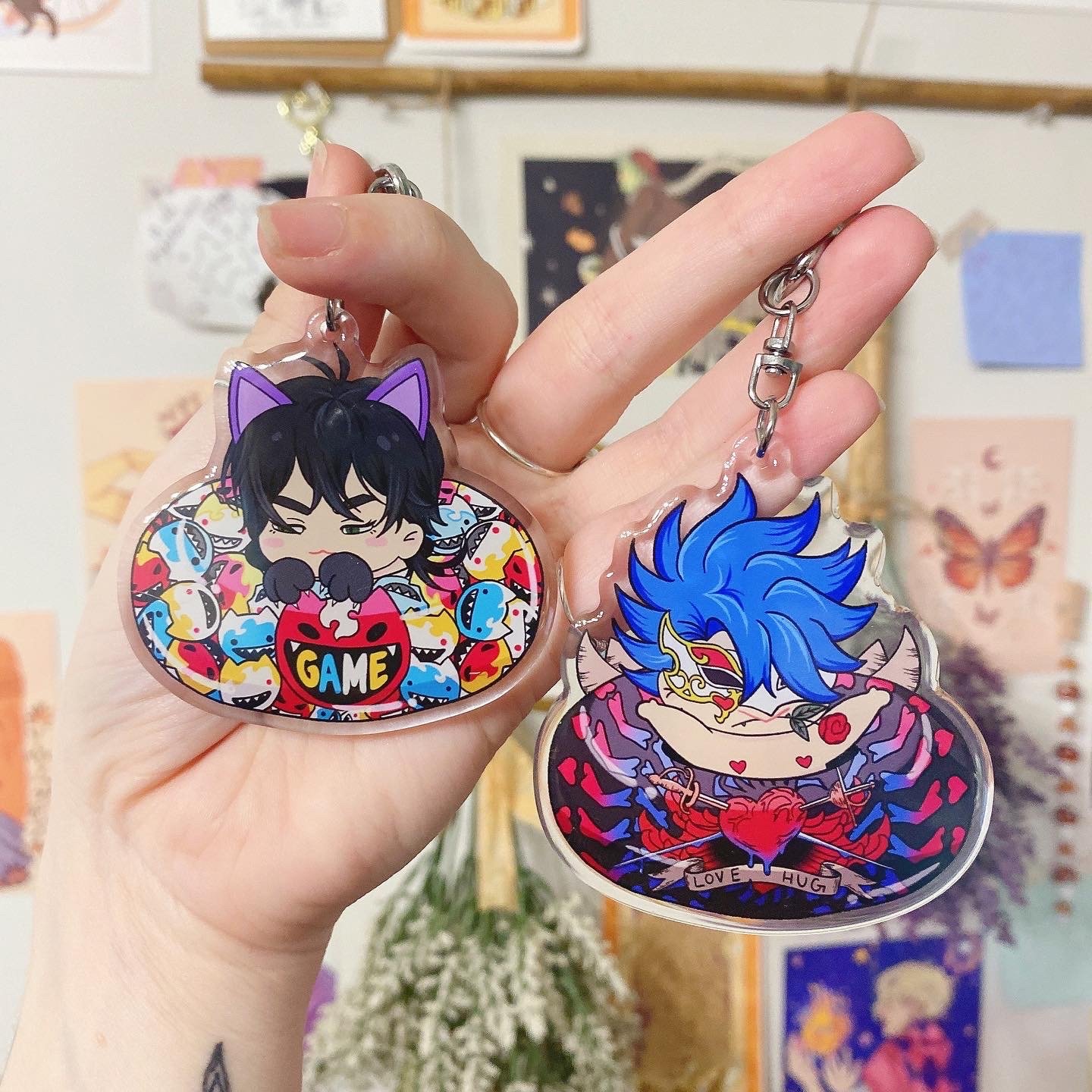 Each charm is 2.5" wide with an epoxy coating on the front and a silver clasp