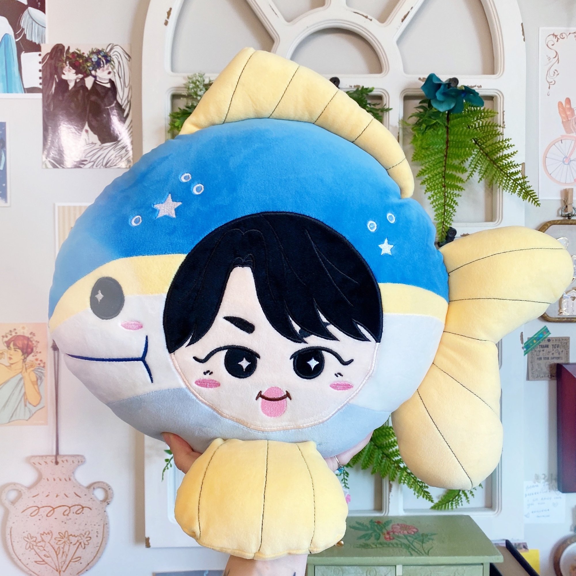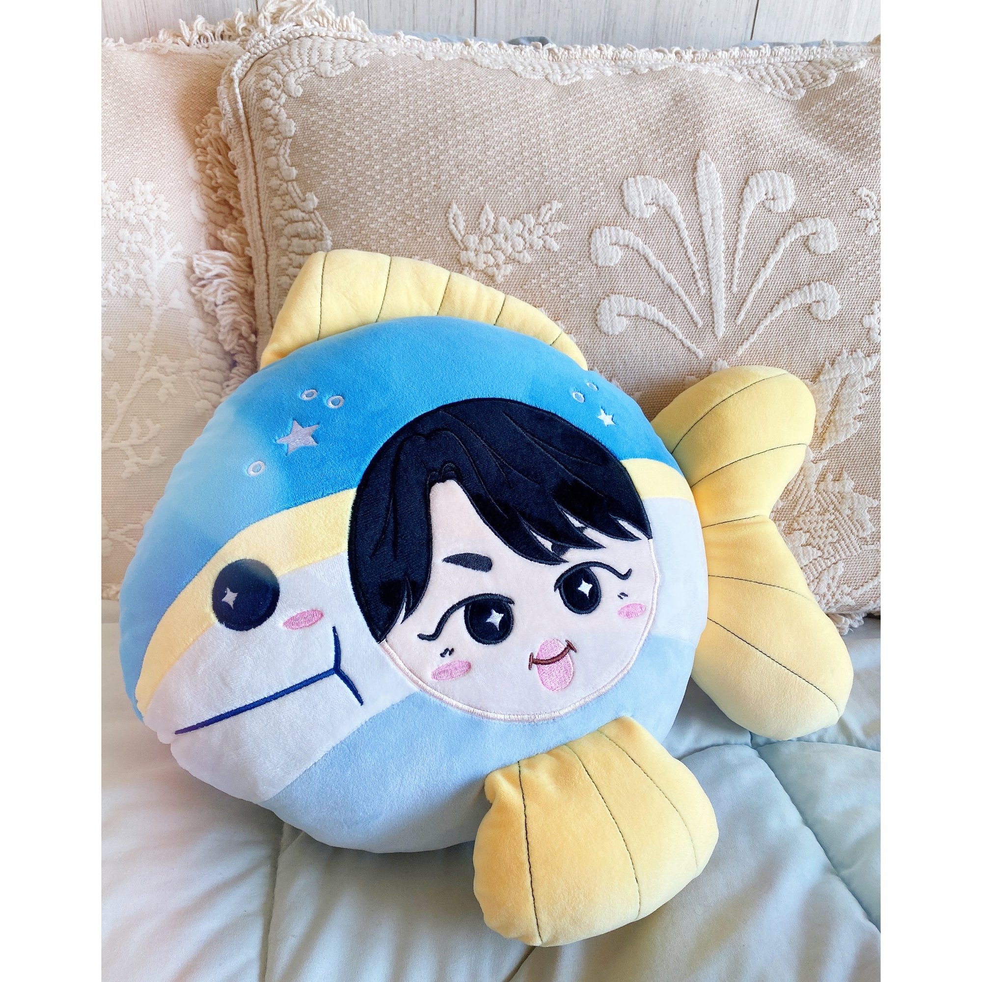 A SUPER soft and squishy cushion of our lovely Seokjinnie in a Tuna! Inspired by his hit track "Super Tuna."